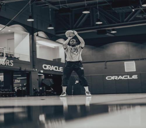 坐落在旧金山湾区特里-弗朗索瓦大道的勇士队的训练馆内,乔纳森-库明加刚刚结束了一组个人训练。